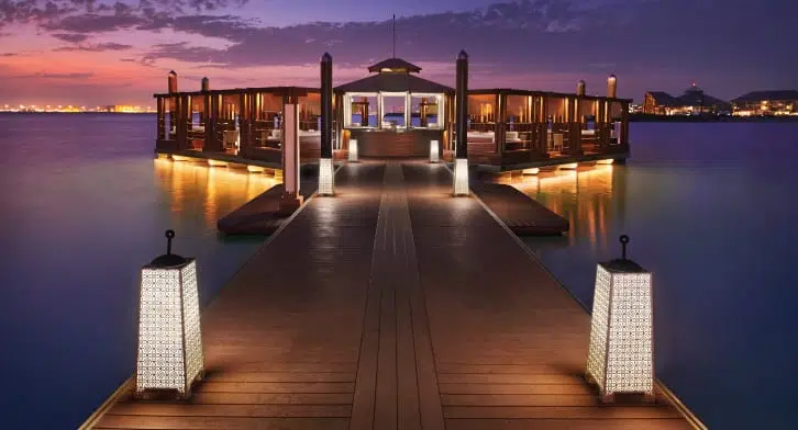 جرب تناول العشاء مع شريكك تحت النجوم لإثارة الرومانسية الحقيقية في علاقتك، ويعد مطعم جازيبو بيتش أحد أفضل الأماكن التي تقدم عشاءً رومانسيًا خاصًا في الدوحة وسط تجربة خيالية، ويقع المطعم في قرية ريتز كارلتون شرق، وأبرز ما يميزه وجود أجواء رومانسية للغاية مع أجواء ساحرة على الشاطئ، وبفضل الديكورات الرائعة والمأكولات اللذيذة، تعتبر هذه الوجهة رائعة للاحتفال بكل المناسبات الخاصة كالذكرى الستنوةي، أو عيد الميلاد، أو أي مناسبة تساعد في إنعاش العلاقة مرة أخرى .
