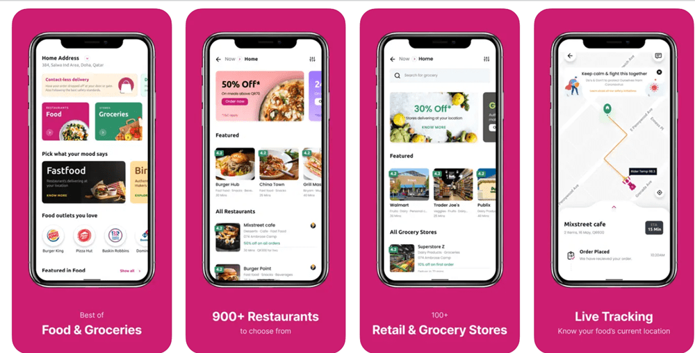 - طلبات (Talabat): الوجهة الأولى لعشاق الأكل، حيث يجمع مئات المطاعم ويتيح أيضاً طلب البقالة والأدوية وحتى الورود.