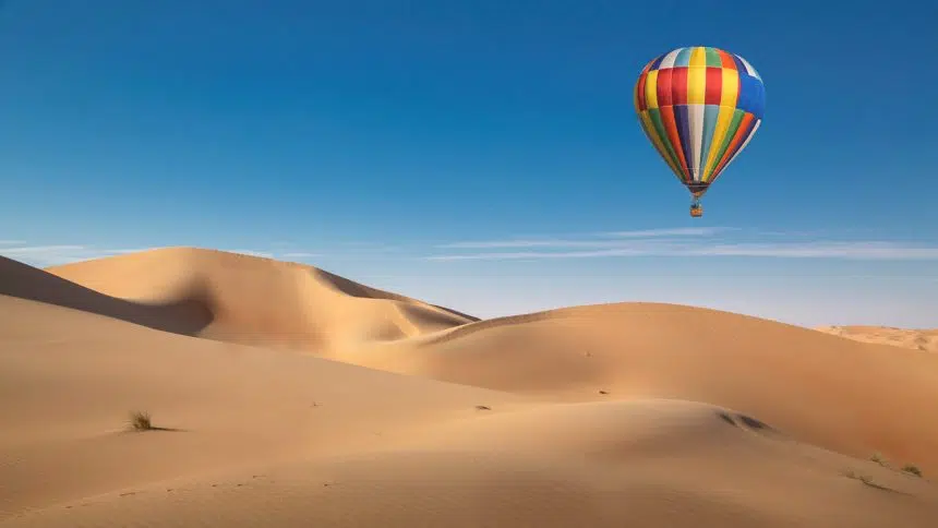 10- رحلة بالمنطاد الهوائي: ارتفع فوق الصحراء في رحلة منطاد هوائي في الصباح الباكر، واستمتع بمشاهدة الطبيعة تستيقظ تحت أشعة الشمس الدافئة والسماء المتلألئة.