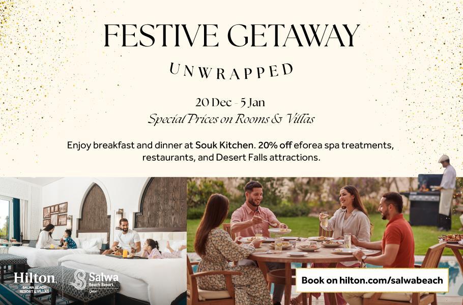 احتفل بالموسم في غرف وأجنحة أنيقة مع عشاء عيد الميلاد أو غداء العيد، تشمل خصومات على الطعام والخدمات، ومشروب ترحيبي، ودخول إلى شاطئ الدوحة.