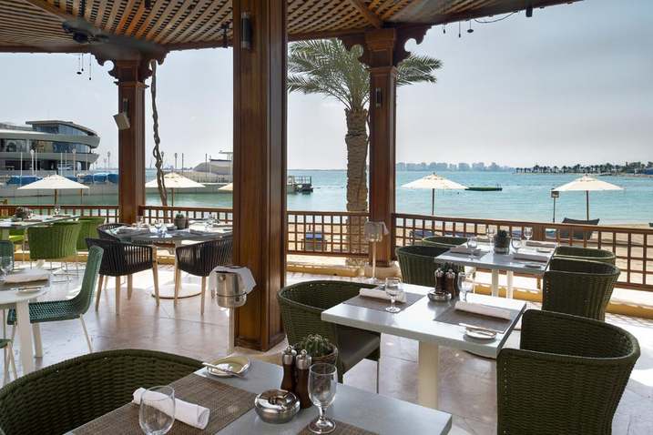 منتجع فاخر في جزيرة اللؤلؤة، يبعد 12 كم عن مركز المعارض و30 كم عن المطار، يحتوي على 11 مطعمًا وإطلالات خلابة، تقييماته رائعة من حيث النظافة، الموقع، والخدمات. - فندق فور سيزونز الدوحة