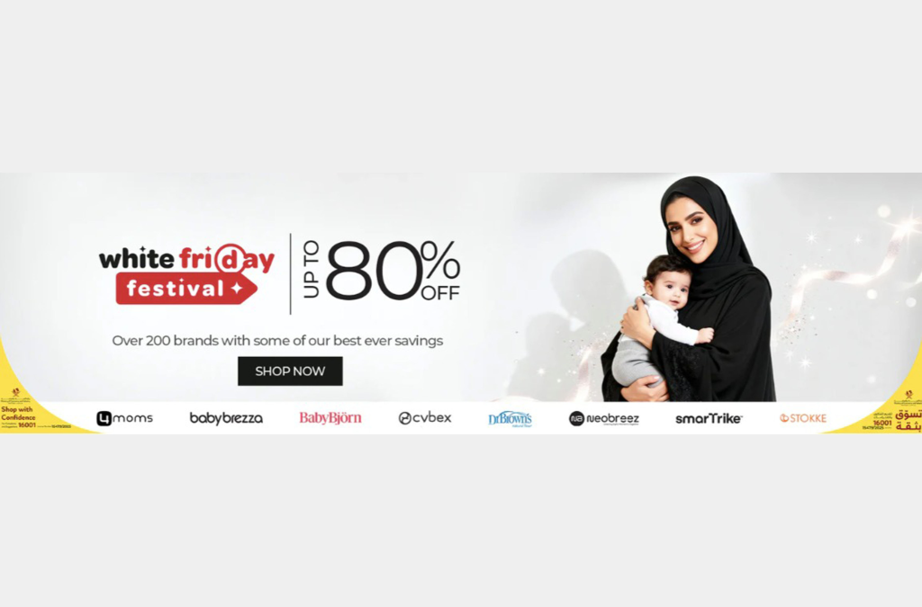 - العروض: خصومات تصل إلى 80% على مستلزمات الأطفال، متاحة حتى نفاد الكمية عبر المتجر الإلكتروني.
