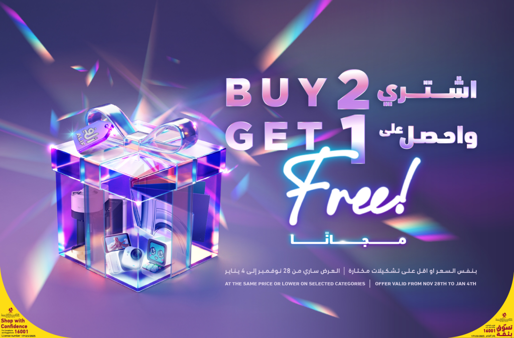 - العروض: عرض “اشتري 2 واحصل على 1 مجاناً” على جميع الفئات باستثناء الألعاب والإلكترونيات.